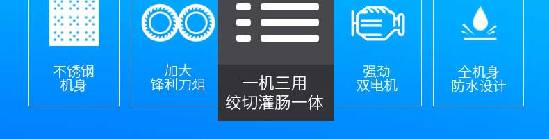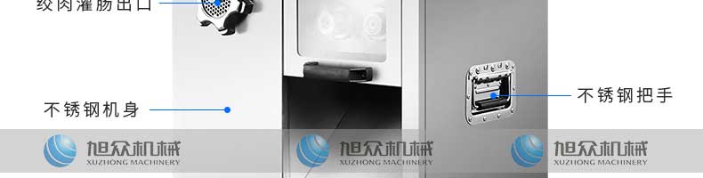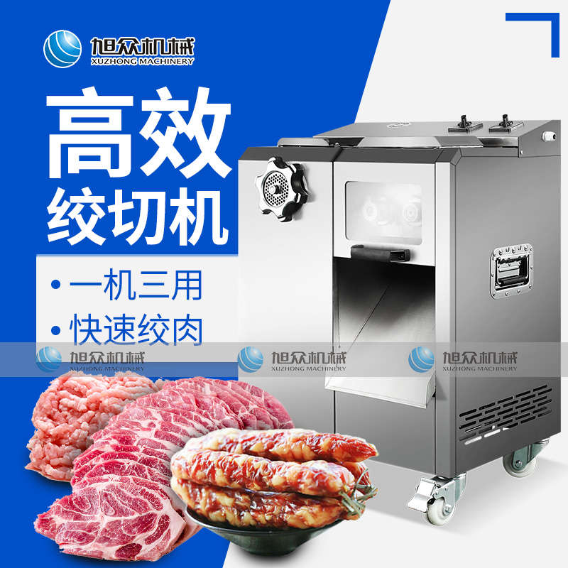 XZ-7絞切機,多功能一體機,切肉絞肉/灌腸/切菜。加厚不銹鋼優質機身堅固耐用,不易生銹,安全衛生易清洗。